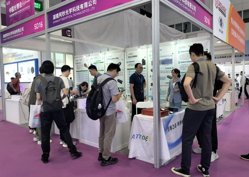 湖南阿秒光学携柱面镜、复眼透镜、鲍威尔棱镜等玻璃模压非球光学器件;望远测距、高精度测距传感、3D扫描、鲍威尔一体化等单组件类单模组件;激光雷达组件等多模组件;高能量激光变焦镜头等主销、热销产品亮相5D16号展位。