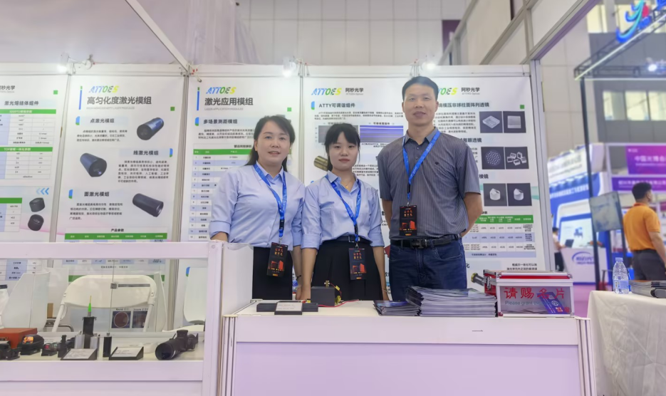 展会期间,阿秒光学展位热闹非凡,深受欢迎。其中我们新开发的鲍威尔一体化模组,解决了鲍威尔量产低、一致性差、不稳定等应用难点,深受行业好评。